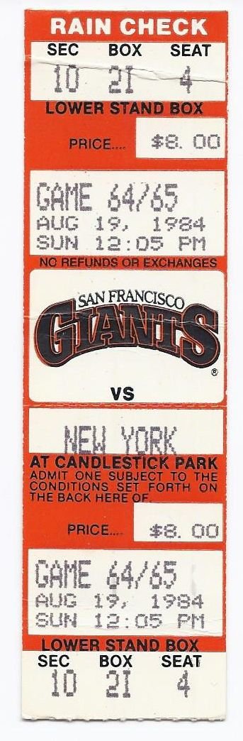 1984 New York Mets @ San Francisco Giants Full Unused Ticket August 19th Double