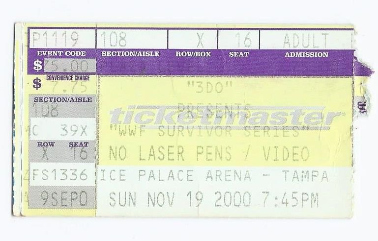 wwf 2000 Survivor Series Ticket Stub November 19th Ice Palace Arena Tampa Bay