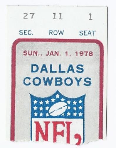 1977 NFC Championship Ticket Stub Vikings @ Cowboys. This Ticket is in VERY good Condition no rips tears writing Or Creasing as you can see in the pictures nice RARE piece of Football History. if you have any questions please don't hesitate to ask. Fast same or next day shipping with delivery confirmation within the U.S. This Item Ships Free within the United States.