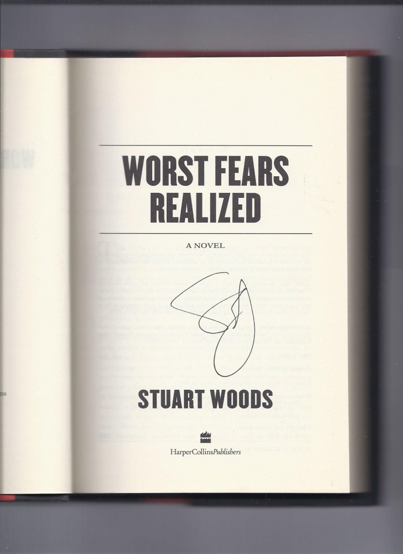 For Sale Worst Fears Realized by Stuart Woods Signed 1st/1st Hardback book. Rare autograph to obtain. 100% Authentic. Book will be accompanied by our COA.