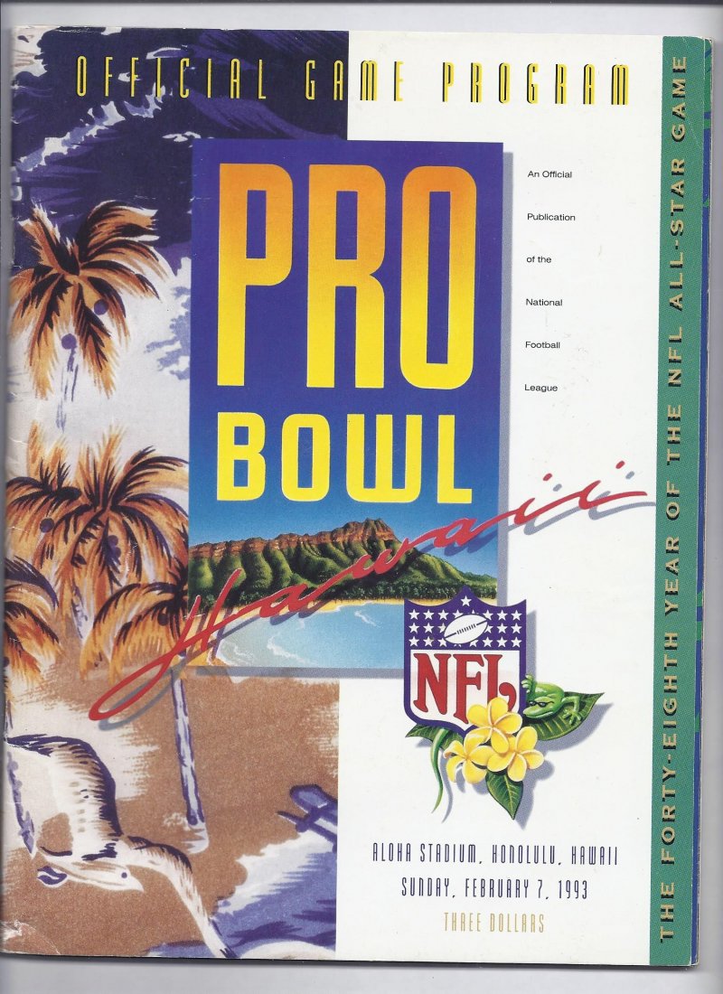 1993 NFL Pro Bowl Game Program NFC AFC. This Program is in Very good condition with some minor handling wear would look great framed with a Ticket or picture a RARE piece of Pro Bowl History if you have any further questions please dont hesitate to ask!