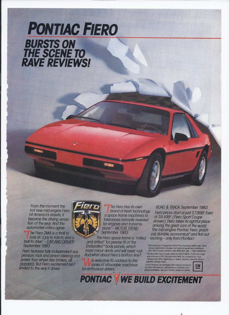 more great Print Ad's @ www.everything-collectibles.com for sale is a rare and hard to find 1983 Pontiac Fiero Print Ad Automobile car. In good used condition as pictured. if you have any questions please don't hesitate to ask. Fast same or next day shipping with delivery confirmation within the U.S. This Item Ships Free within the United States.