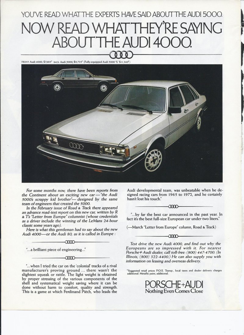 1979 Audi 4000 and 5000 Print Ad Automobile car