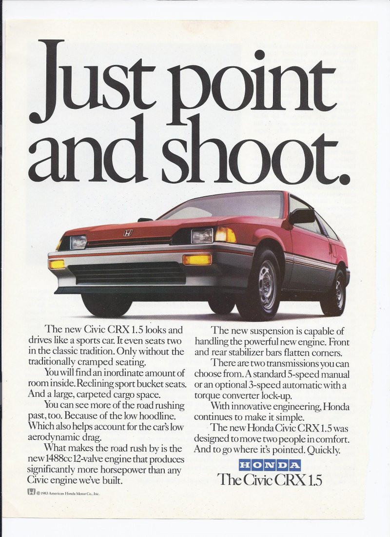 1983 Honda Civic CRX 1.5 Print Ad Automobile car