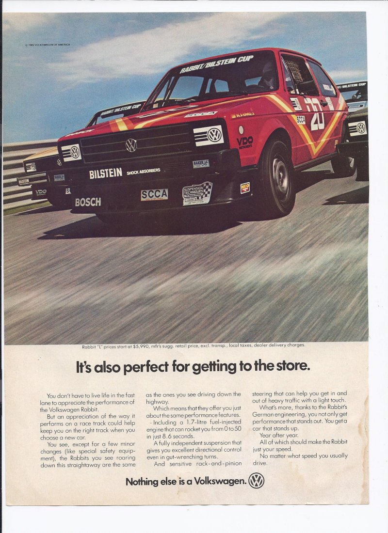 1982 Volkswagen Rabbit Print Ad Automobile car