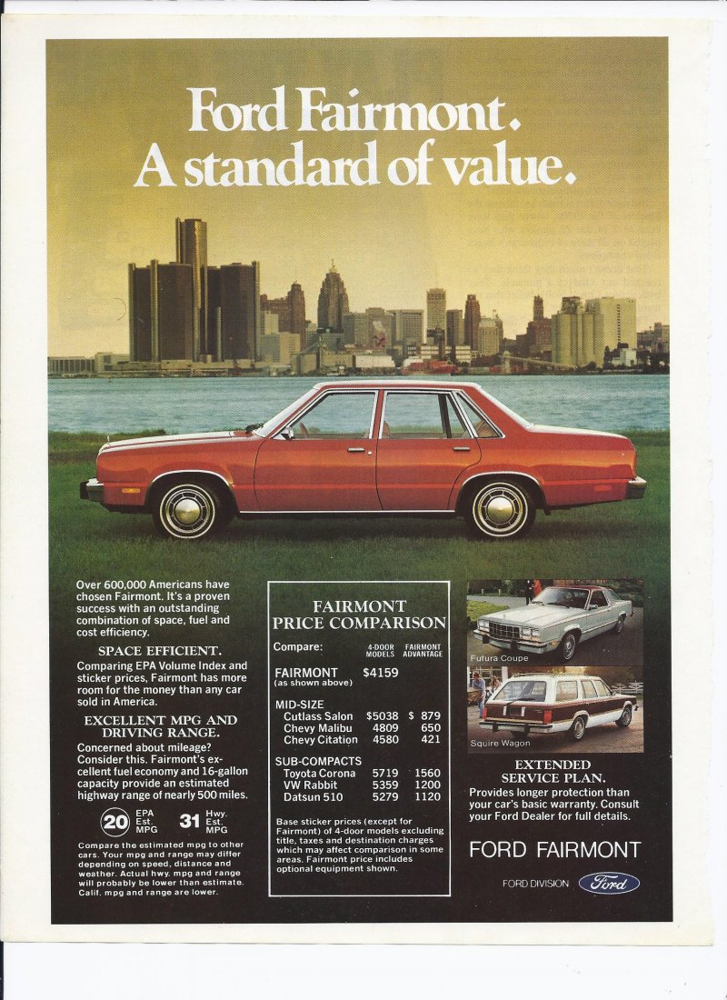 vintage 80's Ford Fairmont Print Ad Automobile car