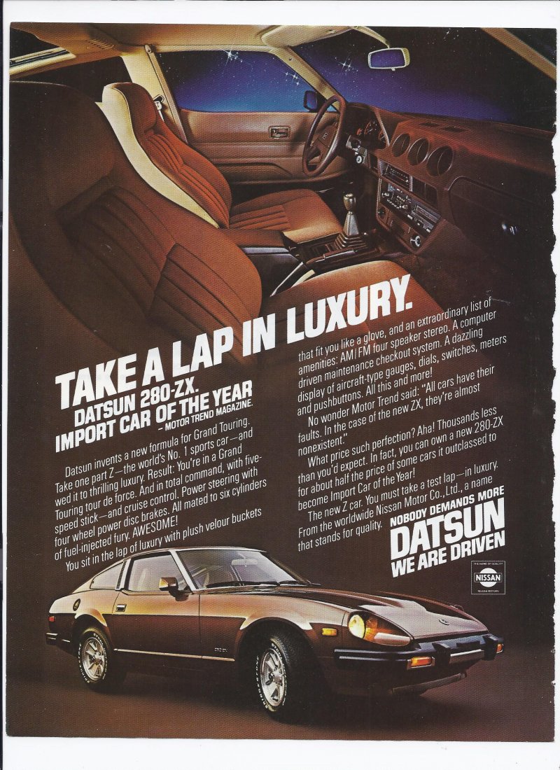 more great Print Ad's @ www.everythingcollectibles.biz for sale is a rare and hard to find 1979 Datsun 280-ZX Print Ad Automobile car. In good used condition as pictured. if you have any questions please don't hesitate to ask. Fast same or next day shipping with delivery confirmation within the U.S. This Item Ships Free within the United States.