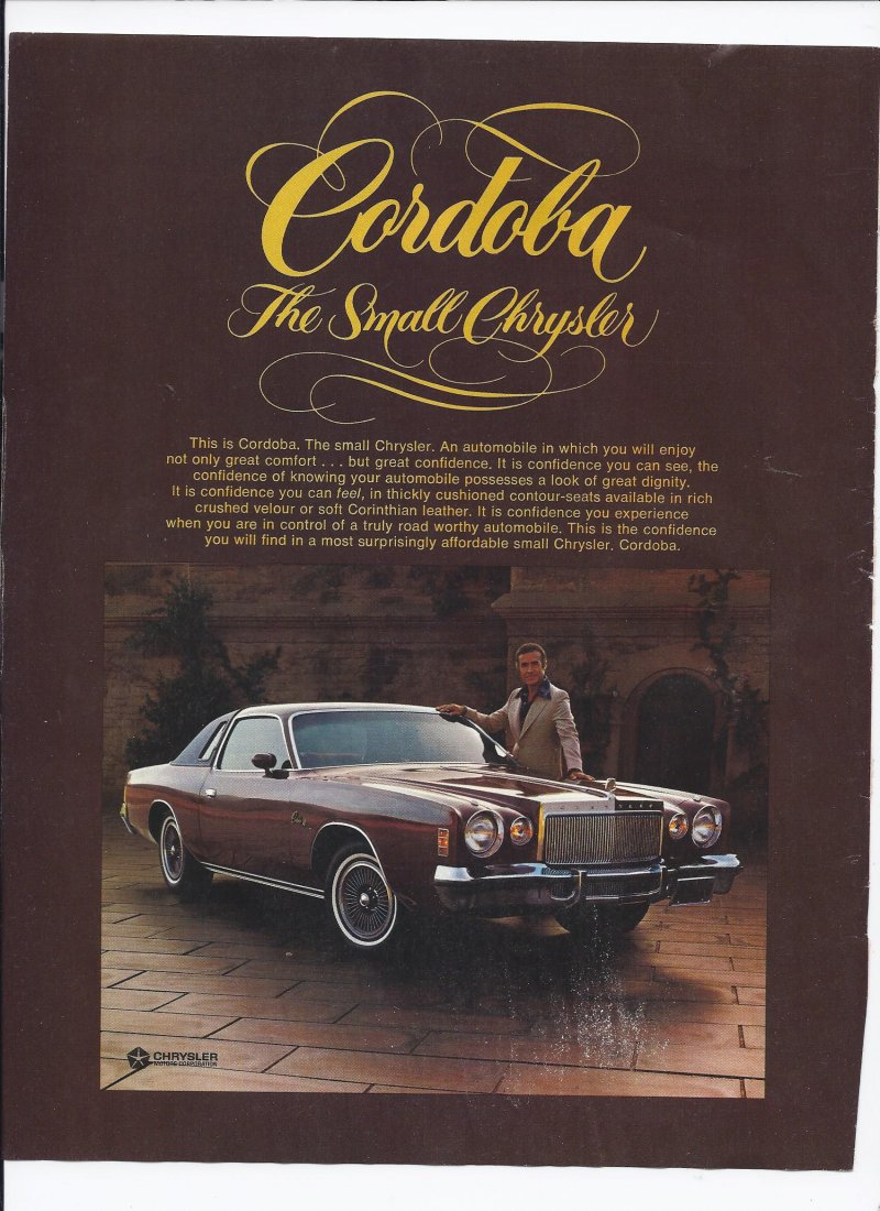 1976 Chrysler Cordoba Print Ad Automobile Car Ricardo Montalban