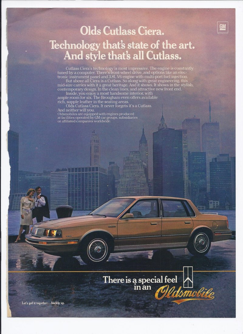 1985 Oldsmobile Cutlass Ciera Print Ad Automobile Car