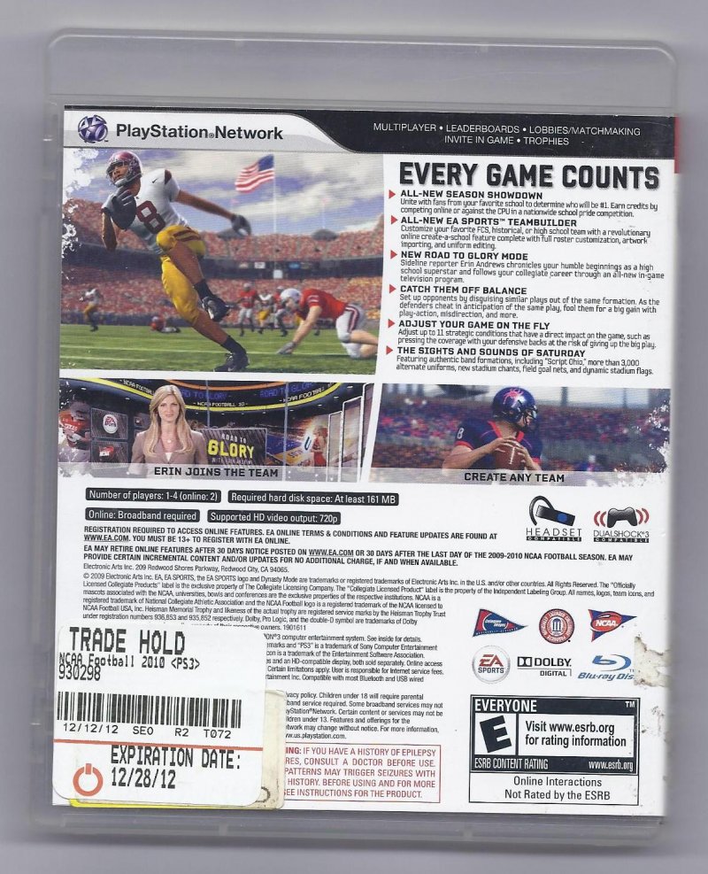 more great Video Games @ www.everything-collectibles.com NCAA Football 10 PS3 video Game Playstation 3 2010 EA Sports. This Video Game is in very good condition as you can see from the picture tested and works. if you have any further questions please don't hesitate to ask! if your order is over $50 Shipping is FREEE within The U.S.!!!