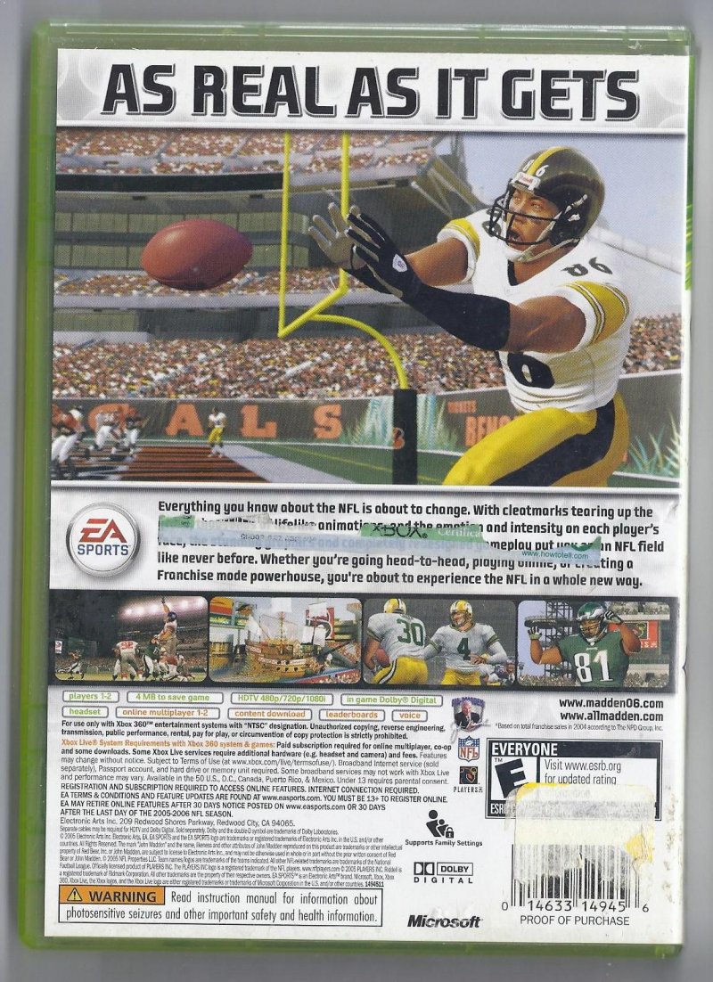 Madden 06 Xbox 360 video game NFL Football 2006