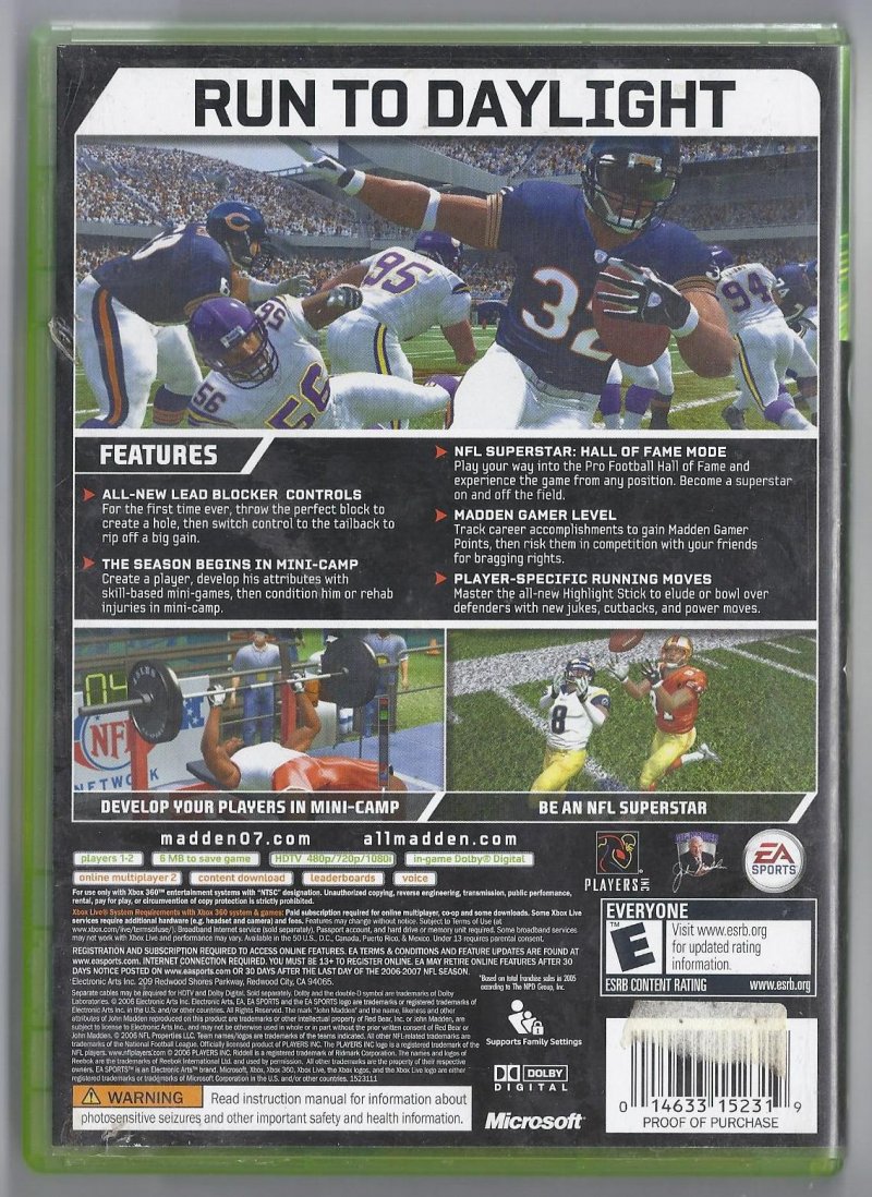 more great Video Games @ www.everything-collectibles.com Madden 07 Xbox 360 video game NFL Football 2007. This Video Game is in very good condition as you can see from the picture tested and works. if you have any further questions please don't hesitate to ask! if your order is over $50 Shipping is FREEE within The U.S.!!!