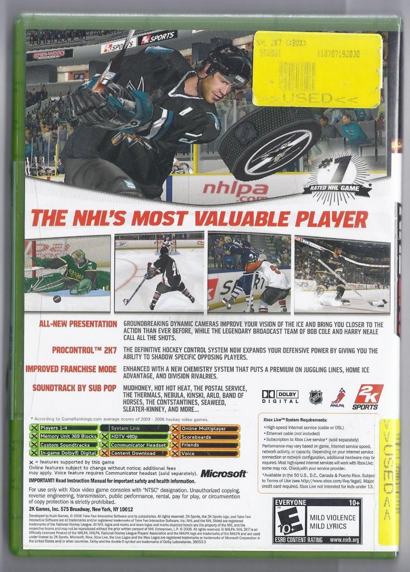 more great Video Games @ www.everything-collectibles.com NHL 2k7 XBOX video Game 2007 Hockey Disc Only. This Video Game is in good used condition as you can see from the picture tested and works. if you have any further questions please don't hesitate to ask! if your order is over $50 Shipping is FREEE within The U.S.!!!