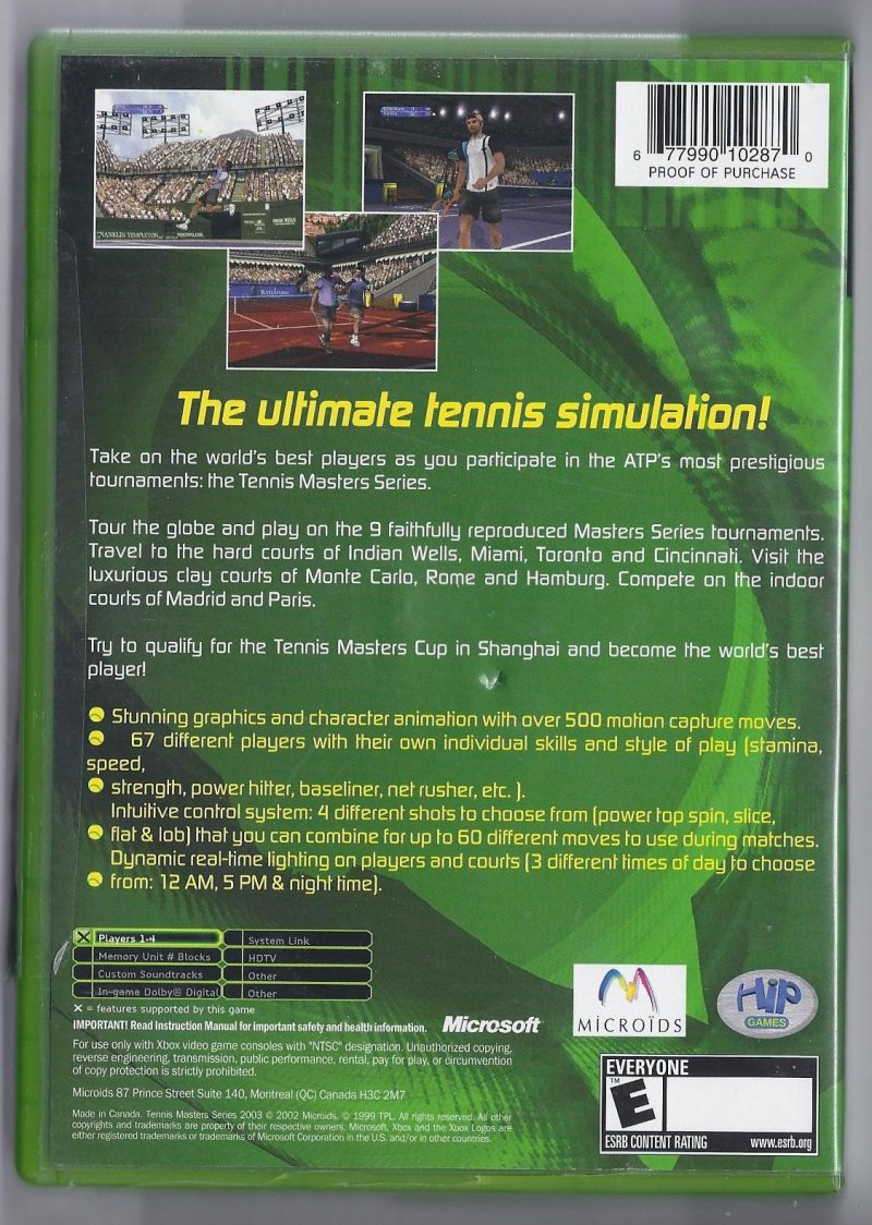 more great Video Games @ www.everything-collectibles.com Tennis Masters Series 2003 video Game 2003 Tennis CIB (Case Manual Disc). This Video Game is in good used condition as you can see from the picture tested and works. if you have any further questions please don't hesitate to ask! if your order is over $50 Shipping is FREEE within The U.S.!!!