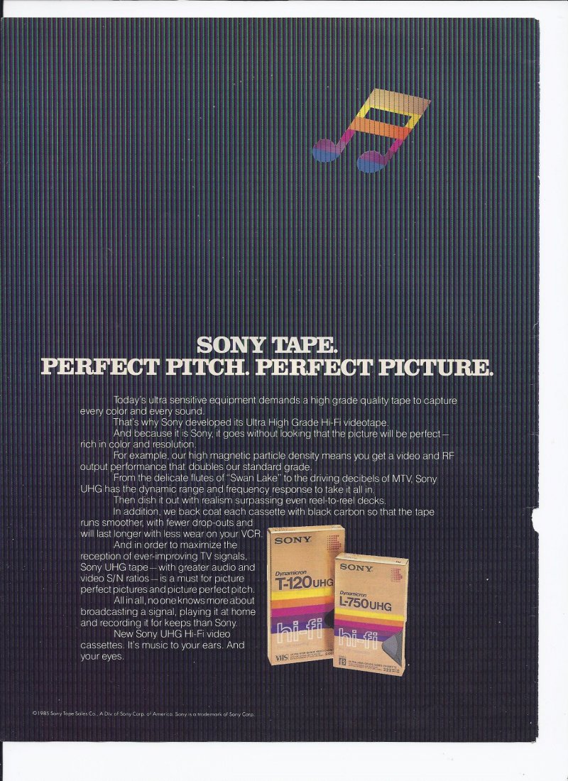 1984 Sony VHS Beta Tapes Print Ad Electronics