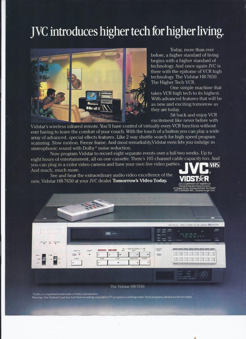 80's JVC Vidstar HR-7650 Print Ad Vintage VHS Player