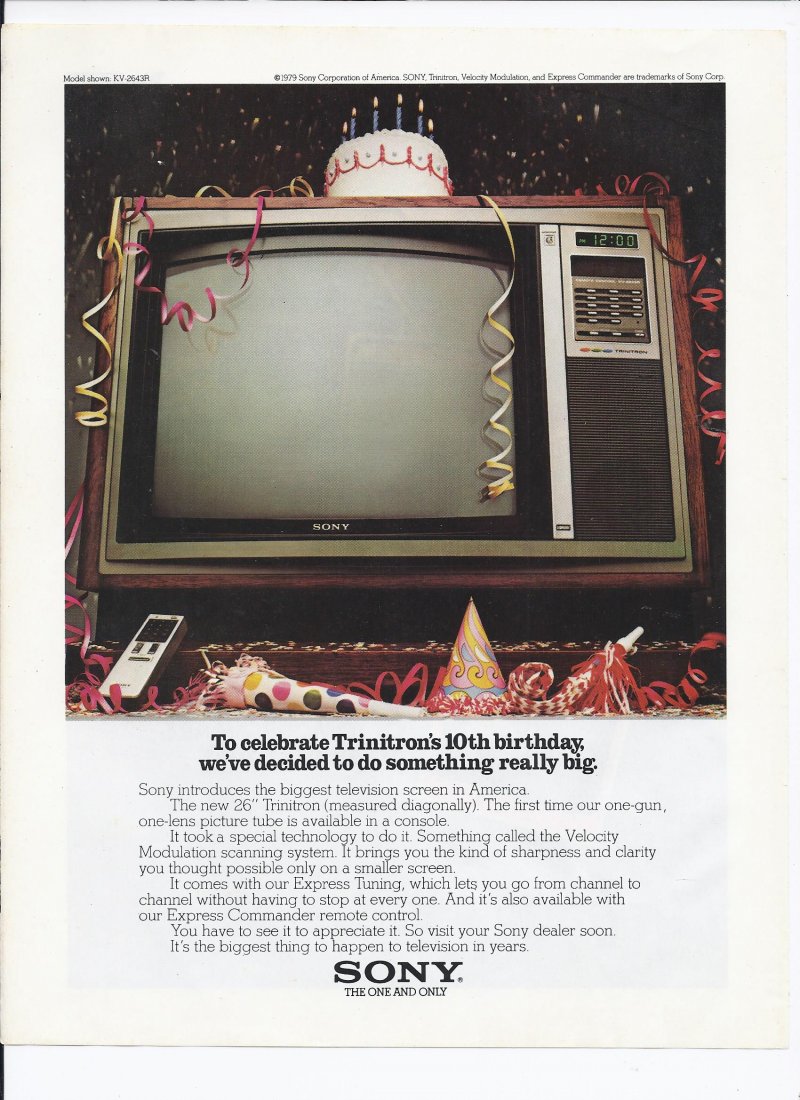 1979 Sony Trinitron Print TV Ad Vintage Electronics Television KV-2643R