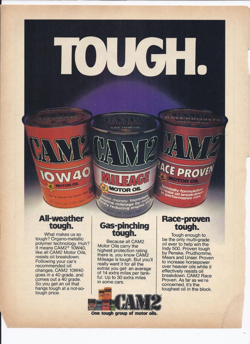 80's CAM2 Motor Oil Print Ad Automobile Car