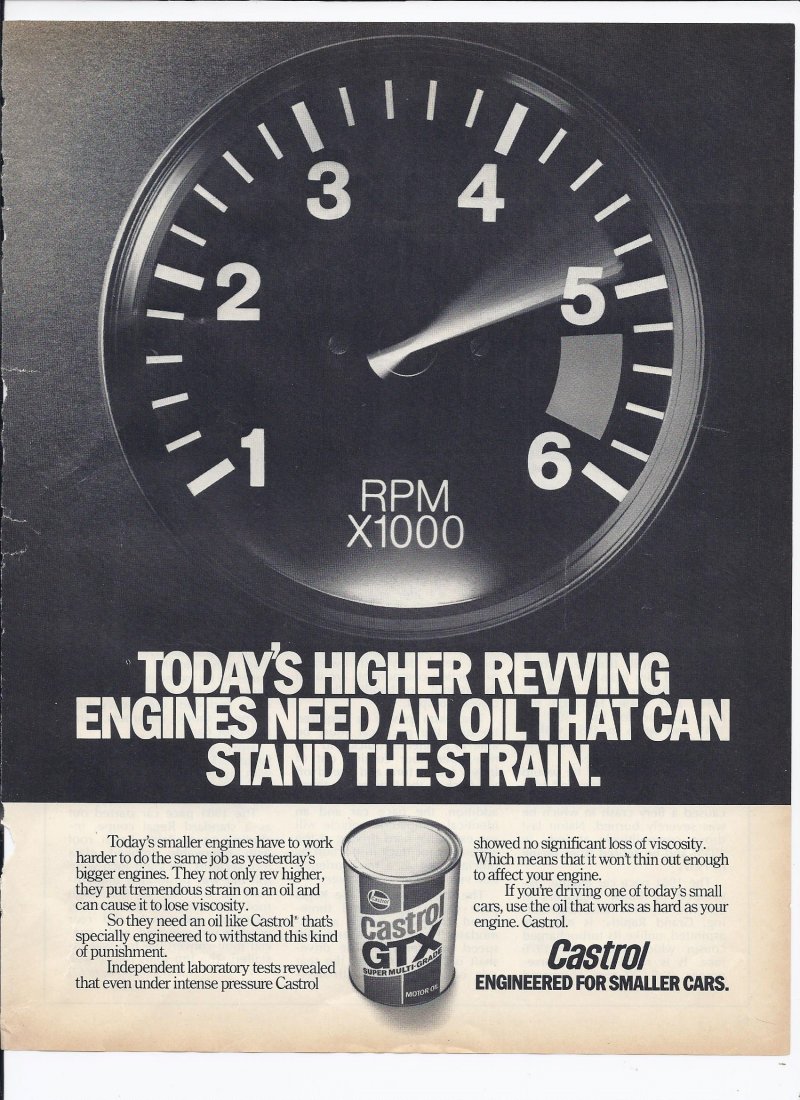 80's Castrol GTX Motor Oil Print Ad Automobile Car