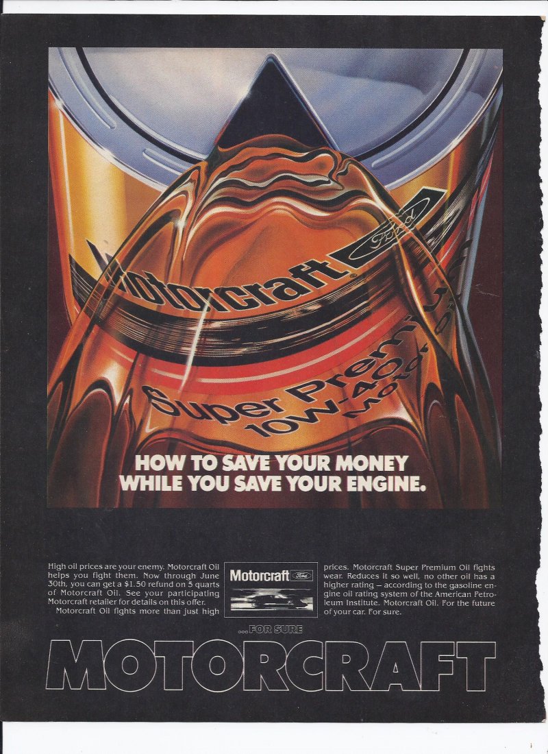80's Motorcraft Motor Oil Print Ad Automobile Car