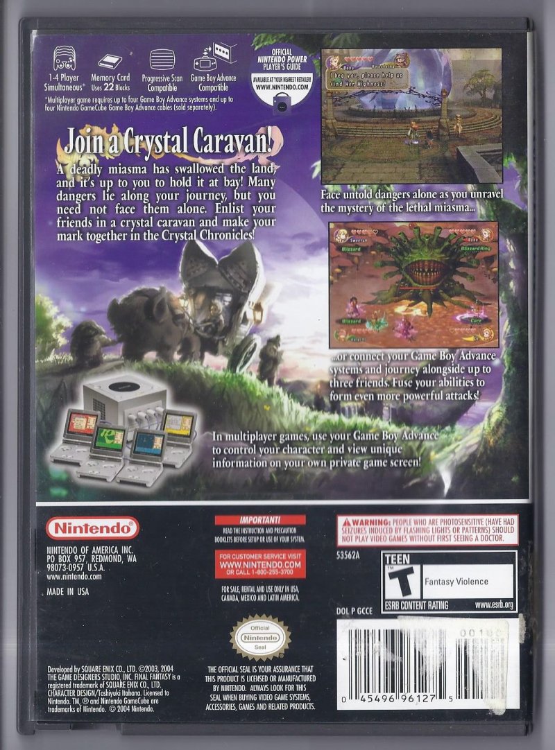 more great Video Games @ www.everything-collectibles.com Nintendo Gamecube Final Fantasy Crystal Chronicles Game Cart Complete Rare and HTF. This Video Game is in very good condition as you can see from the picture tested and works. if you have any further questions please don't hesitate to ask! if your order is over $50 Shipping is FREEE within The U.S.!!!