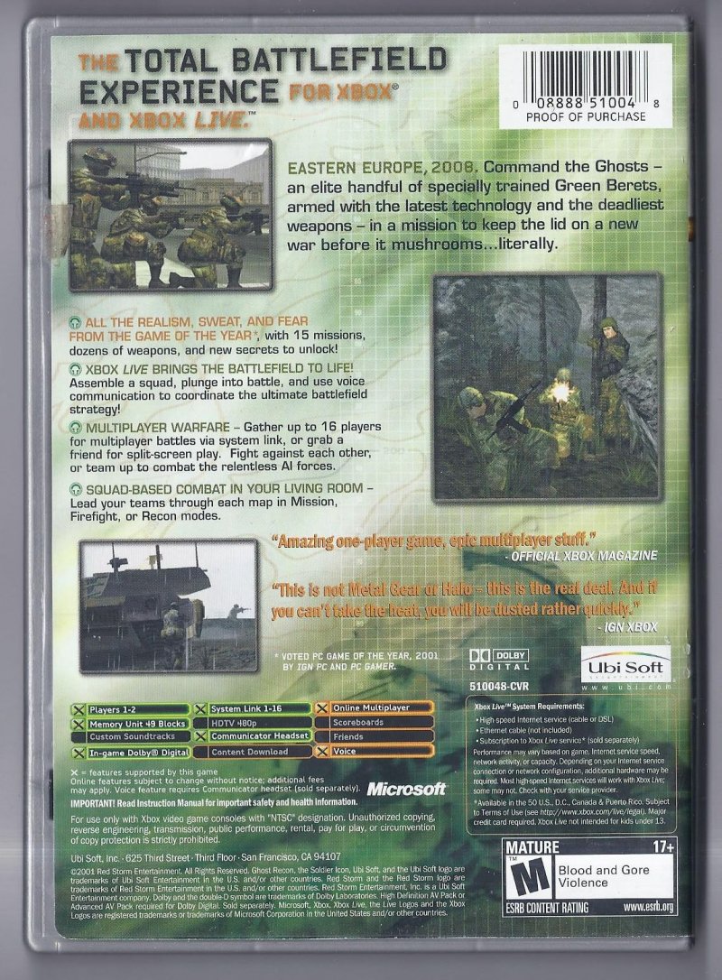 Tom Clancys Ghost Recon video Game Microsoft XBOX CIB
