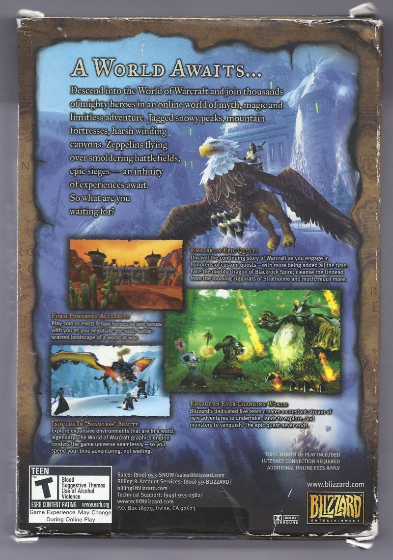 more great Video Games @ www.everything-collectibles.com Vintage Rare and Hard to find world of Warcraft PC Game Blizzard Entertainment. This Video Game is in very good condition as you can see from the picture tested and works. if you have any further questions please don't hesitate to ask! if your order is over $50 Shipping is FREEE within The U.S.!!!