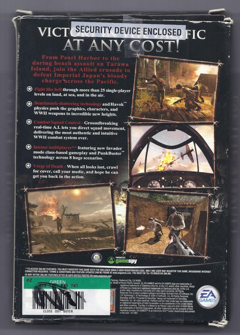 more great Video Games @ www.everything-collectibles.com Vintage Rare and Hard to find Medal of Honor: Pacific Assault PC Game. This Video Game is in very good condition as you can see from the picture tested and works. if you have any further questions please don't hesitate to ask! if your order is over $50 Shipping is FREEE within The U.S.!!!