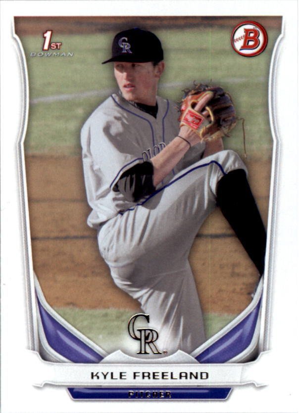 more Great cards @ www.everythingcollectibles.biz For Sale is a 2014 Bowman Draft #DP5 Kyle Freeland Card in NrMt Condition. all single cards are shipped in Penny Sleeves and top loaders. all orders ship with delivery confirmation as well. we usually ship within 2 days of receiving an order. Shipping is a Flat $2 no matter how many cards you buy 1 or 1000 its still $2.