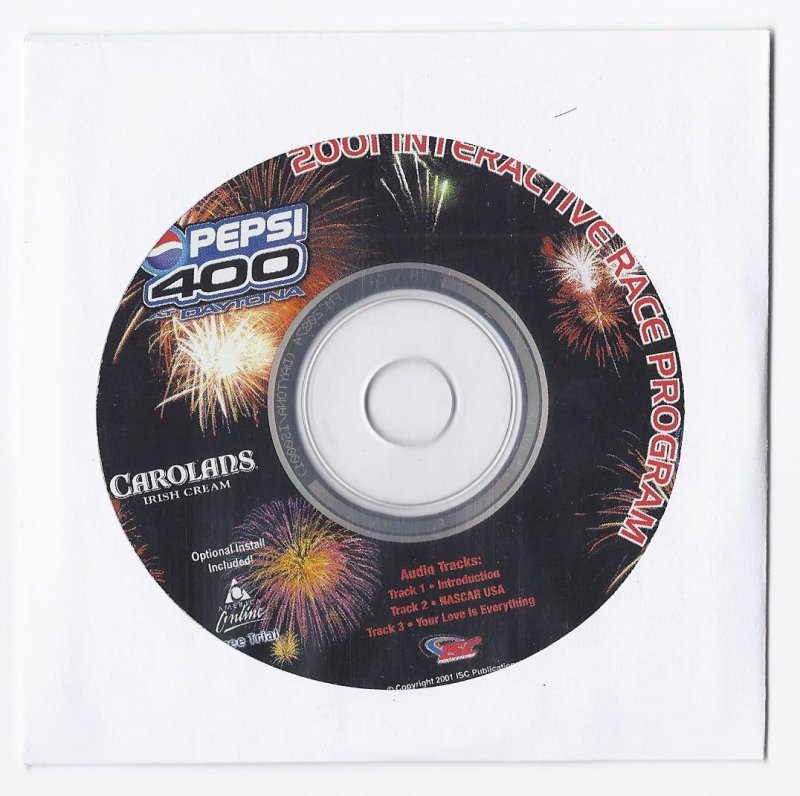 2001 Pepsi 400 Interactive Race Program CD. This is in very good condition with some minor handling wear nice RARE piece of nascar history.