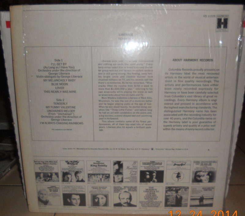 Liberace Tenderly Harmony (4) HS 11325 Vinyl LP Record. Both the Record and Jacket are in VG+ condition. please see photo for more details. what you see is what you will receive. Track List :