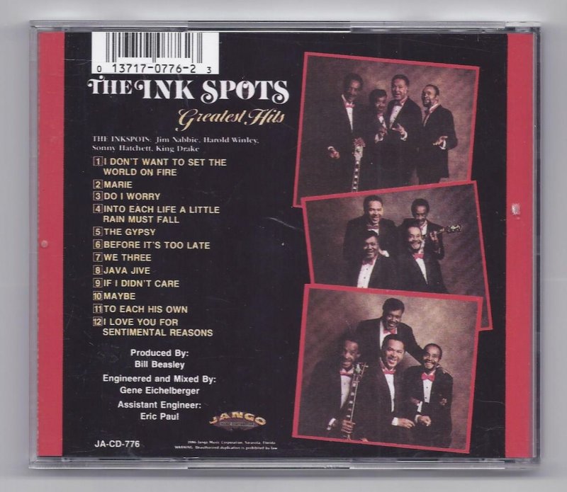 More Great CD's @ www.everything-collectibles.com For Sale is an The The Ink Spots Greatest Hits Music CD. in good used condition. adult owned from private collection. please see photo for more details. what you see is what you will receive. please don't hesitate to ask. Free shipping within the US. Please note all CD's Ship via Media Mail.