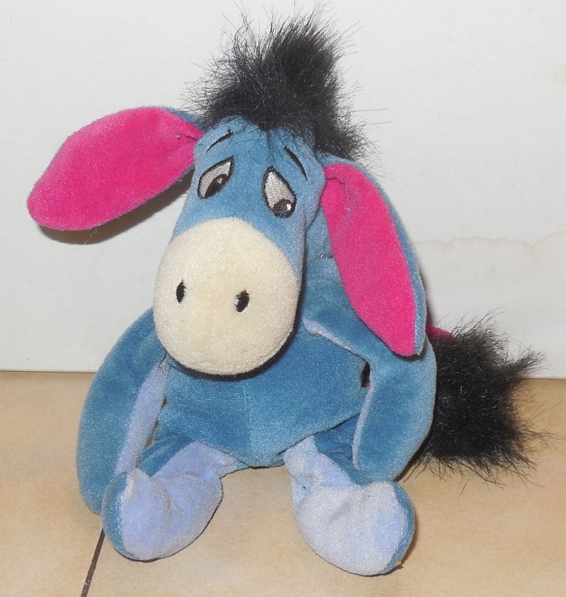 Disney Store Exclusive Winnie The Pooh Eeyore 8" Beanie plush toy Rare Vintage. Its in good Used condition no rips or tears but does have a stain on her bib. please see photo for more details. dont hesitate to ask any questions. all international buyers p