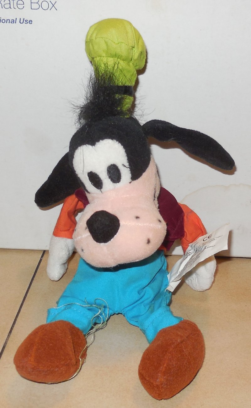 Disney Store Exclusive Goofy 8" Beanie plush toy. Its in good Used condition no rips or tears but does have a stain on her bib. please see photo for more details. dont hesitate to ask any questions. all international buyers p