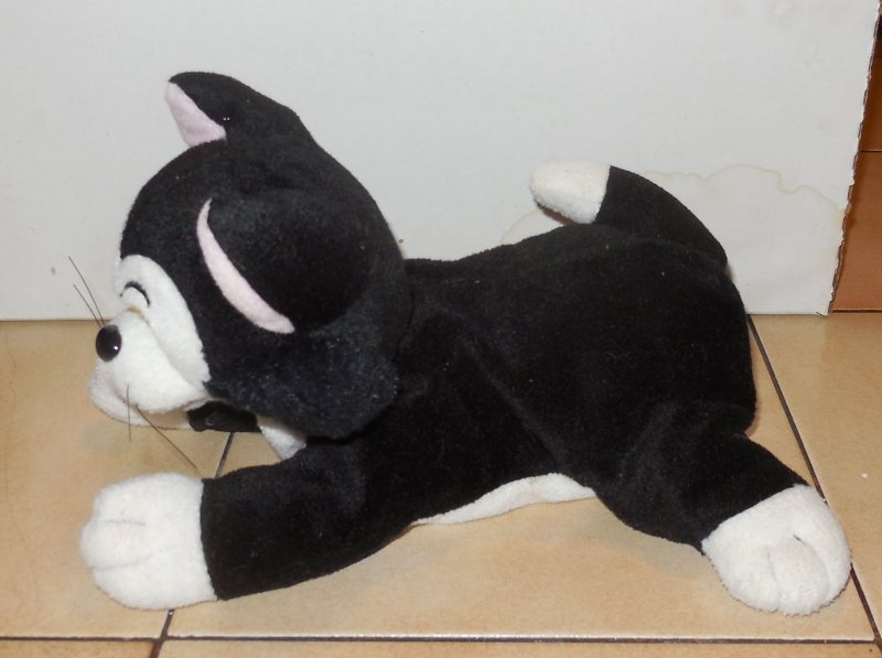 Disney Store Exclusive Pinocchio FIGARO 8" Beanie plush toy. Its in good Used condition no rips or tears but does have a stain on her bib. please see photo for more details. dont hesitate to ask any questions. all international buyers p