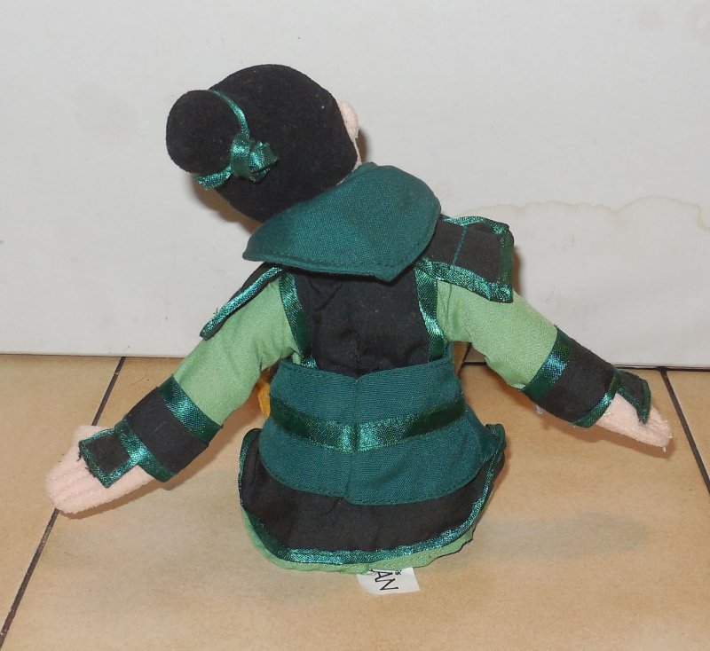Disney Store Exclusive Warrior Mulan 8" Beanie plush toy. Its in good Used condition no rips or tears but does have a stain on her bib. please see photo for more details. dont hesitate to ask any questions. all international buyers p