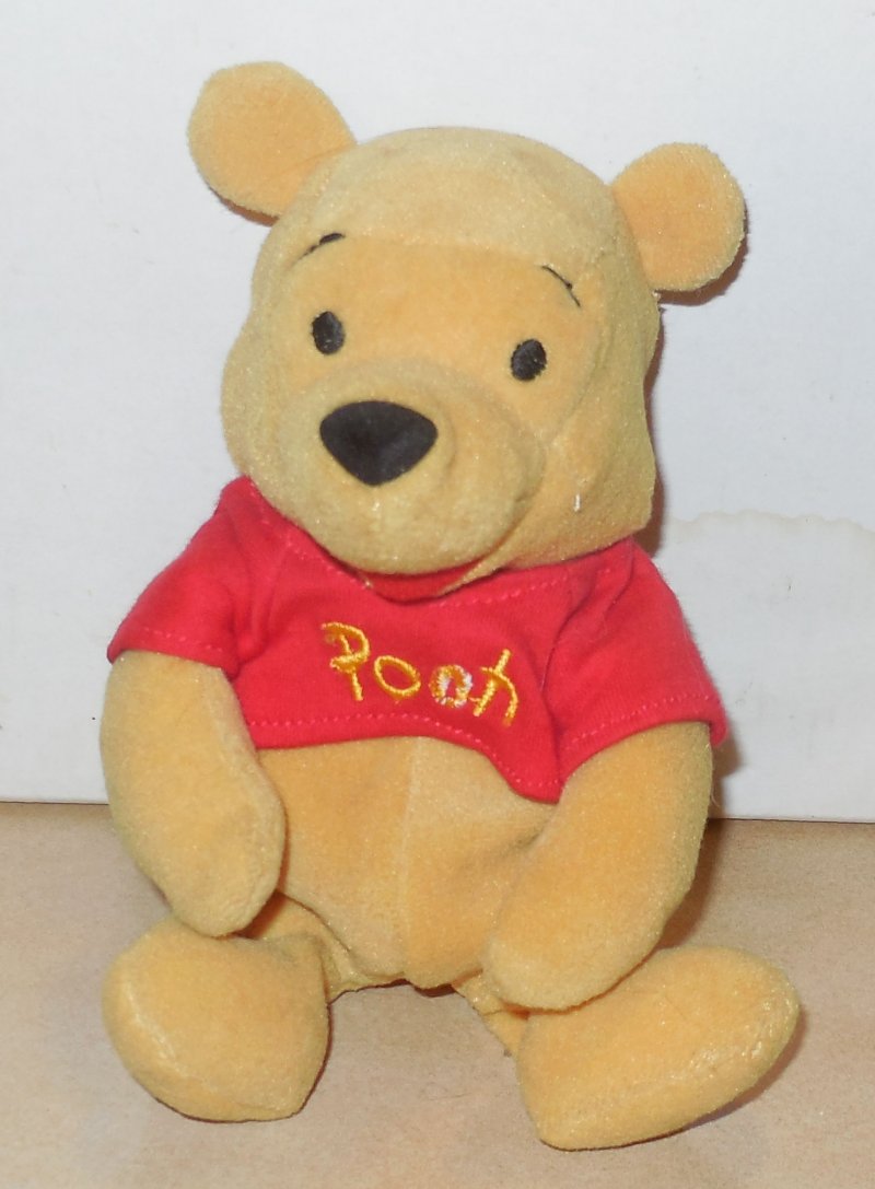 Disney Store Exclusive Winnie The Pooh 8" Beanie plush toy. Its in good Used condition no rips or tears but does have a stain on her bib. please see photo for more details. dont hesitate to ask any questions. all international buyers p
