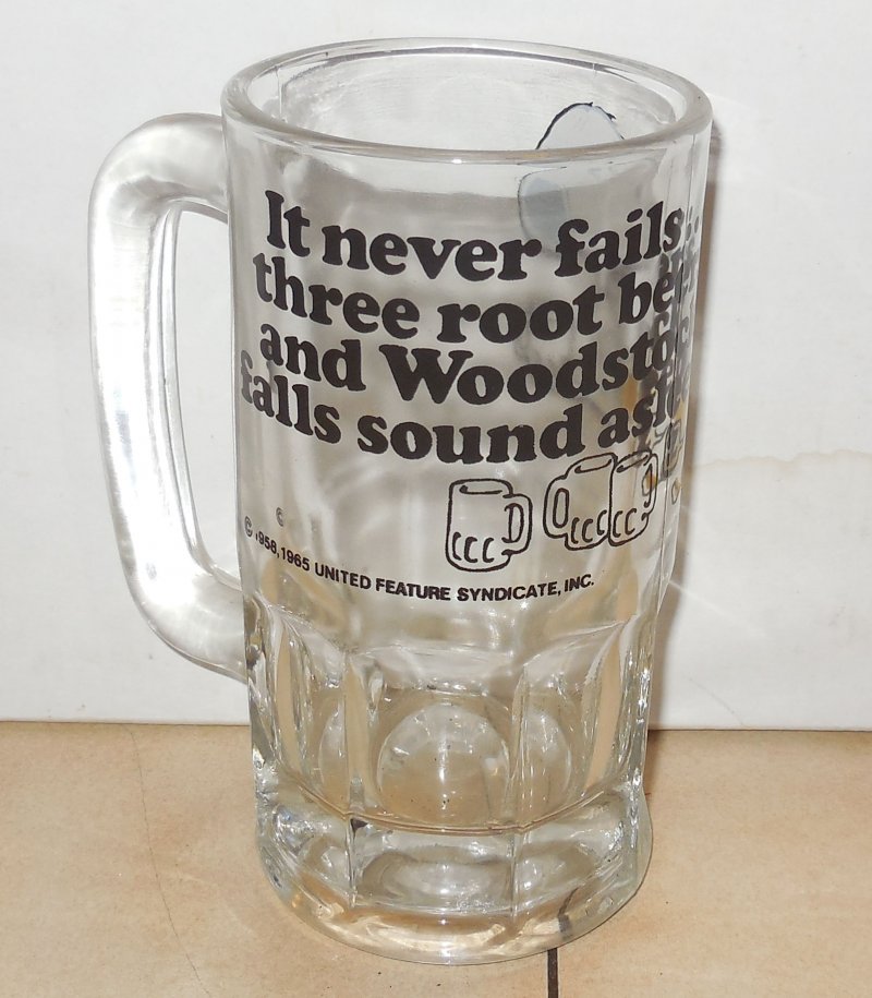 Vintage Snoopy & Woodstock "It Never Fails....Three Root Beers" Glass Mug