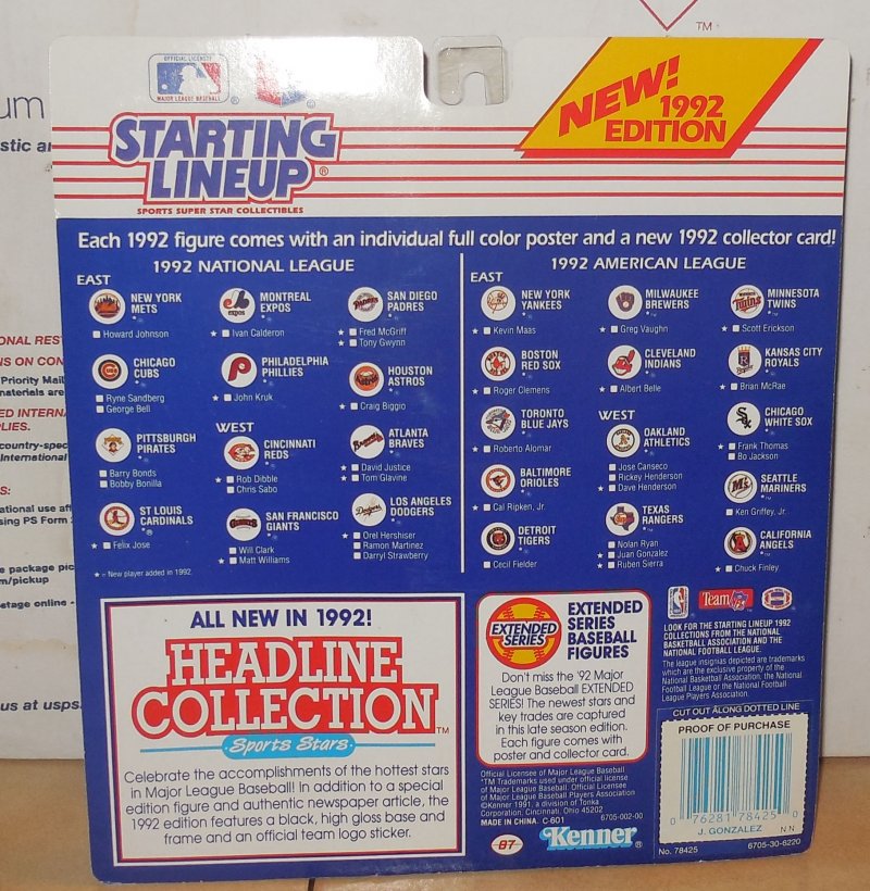 more great collectible Toys @ www.everything-collectibles.com For sale is a 1992 Kenner SLU Starting Lineup Juan Gonzalez Figure Texas Rangers. its in MONMC condition (mint on non mint card) as pictured. What you do see is what you will receive we never use stock photos. if you have any questions about this item please don't hesitate to contact us.