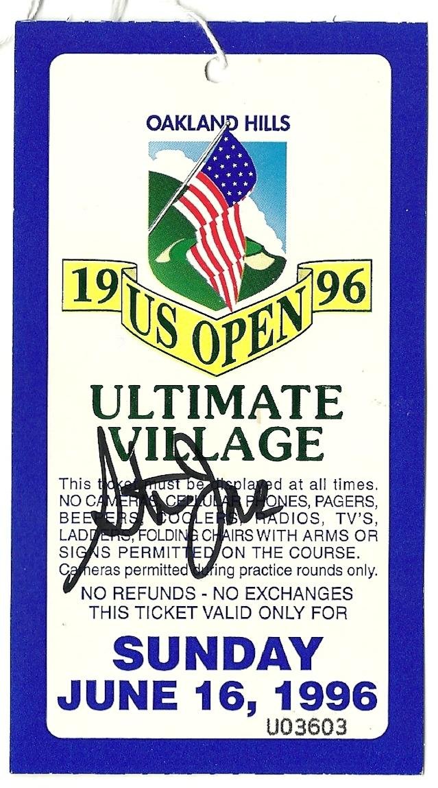 1996 US Open ticket Sunday June 16th Final Oakland Hills Signed By Steve Jones