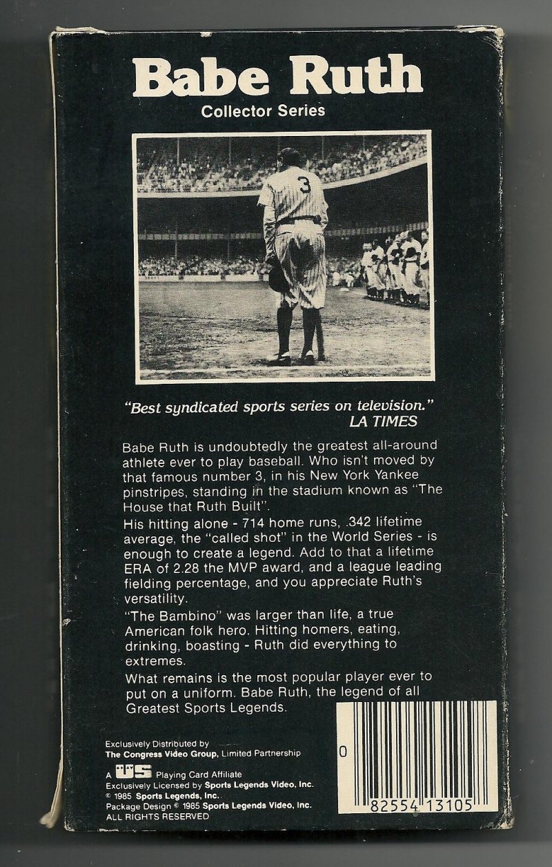 For Sale is a Good Used Condition Greatest Sports Legends Babe Ruth VHS Video Tape Featuring Live interviews and Original Film Highlights. What you see is what you will recieve. Rare and Hard To Find