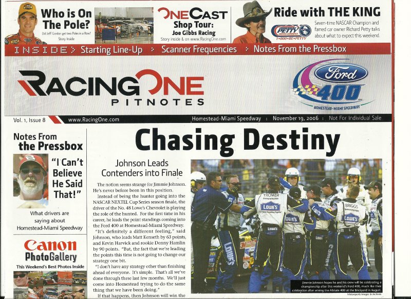 2006 Ford 400 Starting Line Up. This starting Line Up is in very good condition no ripped torn or missing pages no writing on or in the program just has some minor handling wear nice RARE piece of Nascar car racing History if you have any furtth