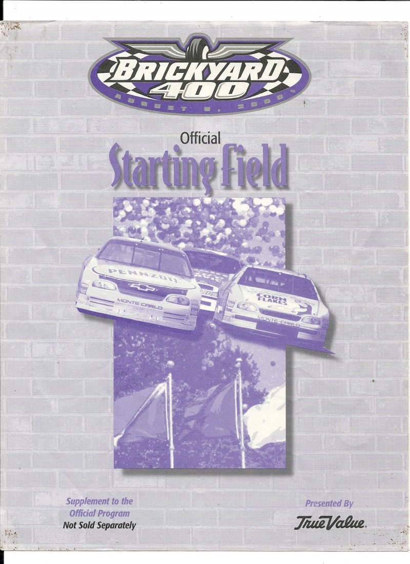 2000 Brickyard 400 Starting line Up. This starting Line Up is in very good condition no ripped torn or missing pages no writing on or in the program just has some minor handling wear nice RARE piece of Nascar car racing History if you have any furtth