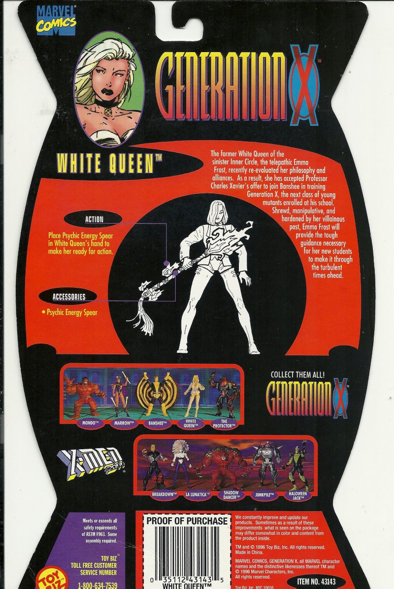 1993 Toy Biz X Men Generation X White Queen CARD BACKING. This is for the CARD Backing ONLY no figure and No Accessories Its in good Used condition no rips or tears. please see photo for more details. What you see is what you will recieve. dont hesitate to ask any questions. all international buyers p