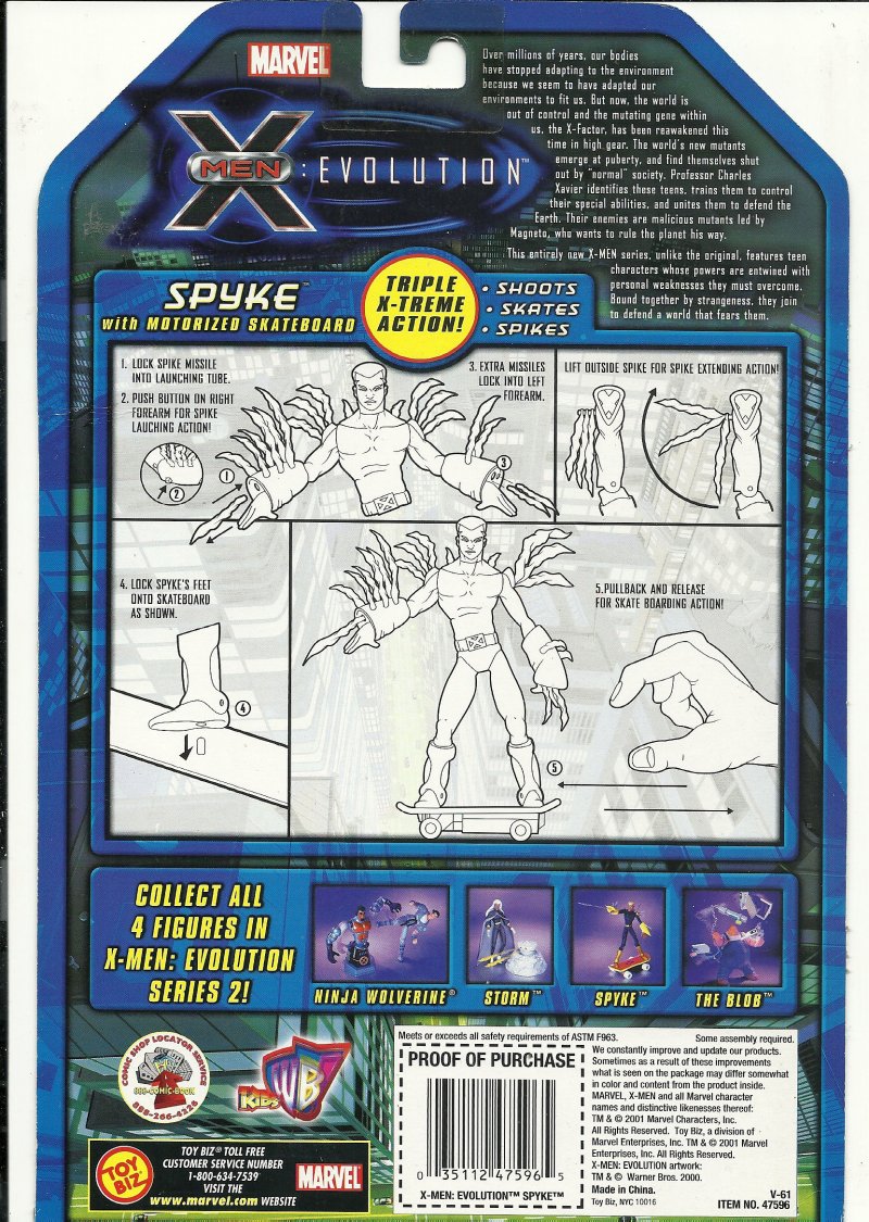 2001 Toy Biz X Men Evolution Spyke with Motorized Skateboard CARD BACKING