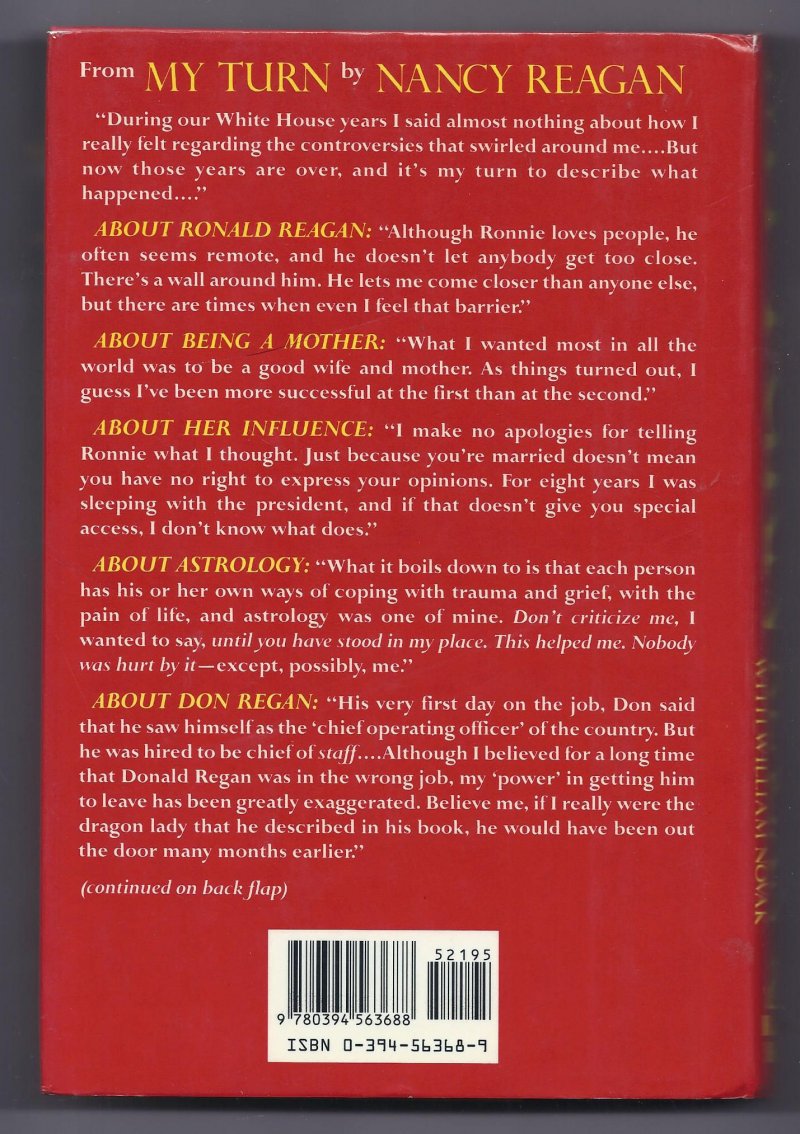 For Sale My Turn The Memoirs of Nancy Reagan with William Novak Signed hardback book. Rare autograph to obtain. 100% Authentic. Book will be accompanied by our COA.
