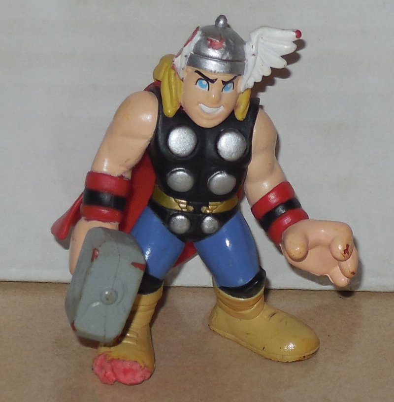 more great collectibles @ www.everythingcollectibles.biz Hasbro Marvel Super Hero Squad Thor action figure! Its in fair condition with part of his helmet missing and part of his foot as well. add $1.50 for Insurance. orders are usually shipped with in 2 business days faster delivery service is avaible upon request