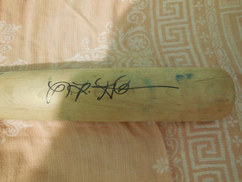more autographs at www.everythingcollectibles.biz. For sale an Niko Goodrum Autographed Game USED Cracked Baseball Bat Signed Twins Prospect. This bat was Used During Twins 2012 Fall Instructional League. This was Given to Me by Niko and had been in my personal Collection for the last 4 years but it is now offered here for the first time to the public. all autographs are obtained in person at games, practices, golf tournaments, airports, theaters, arenas, airports. it will be accompanied