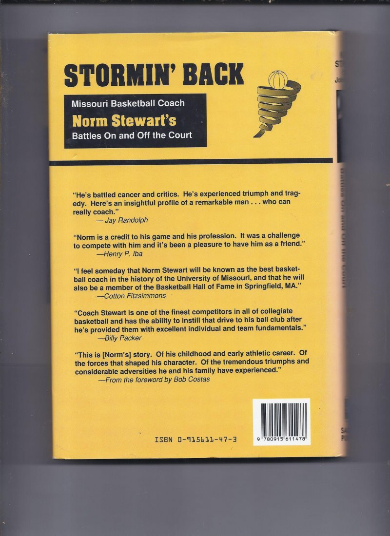 For Sale Stormin' Back Battles On and off the court By Norm Stewart hardback book Signed. Former Missouri Basketball Head coach. 100% Authentic. Book will be accompanied by our COA.
