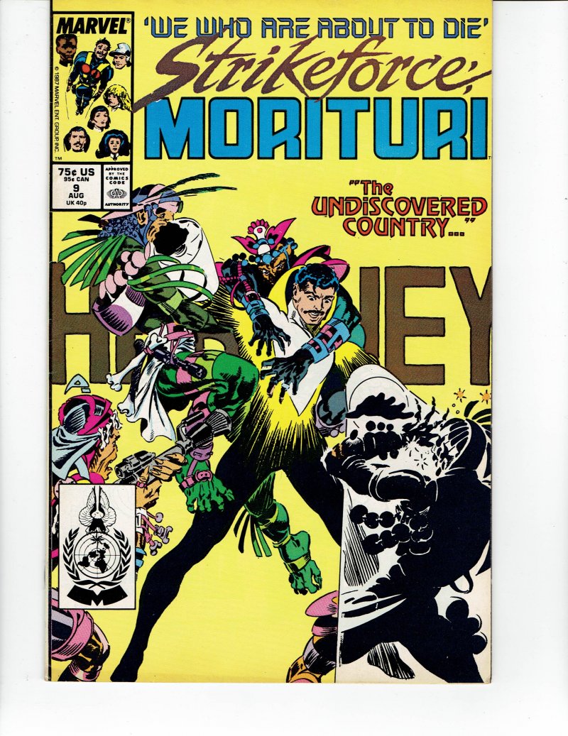 Strikeforce Morituri #9 August 1987 Marvel Comics in VF-NM Condition as pictured. all comics are shipped bagged and boarded all shipments have tracking within the united states and shipping is a flat $5 for all Comics ordered (1 or 1000 shipping is only $5)